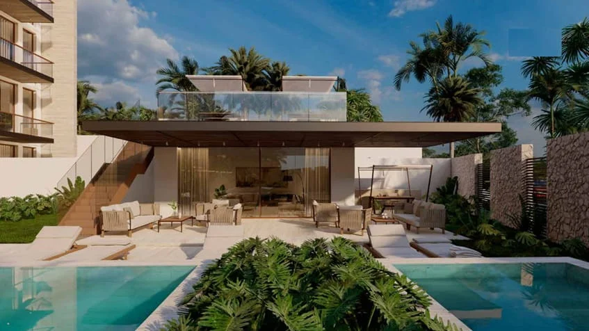- Tipo PH1: 1 recámara – 153 m2 (incluyendo el roof garden con jacuzzi)