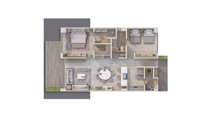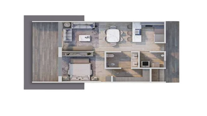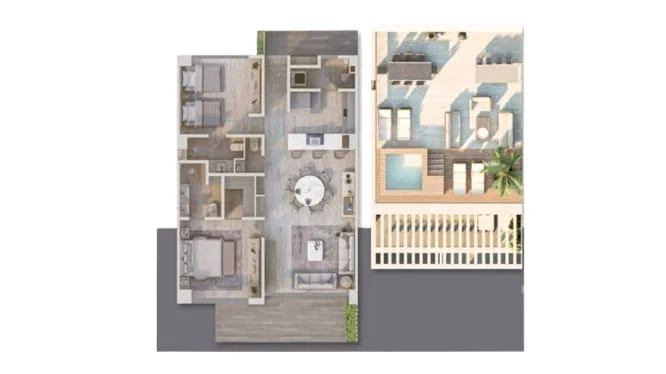 - Tipo PH2: 2 recámaras – 202 m2 (incluyendo el roof graden con jacuzzi)