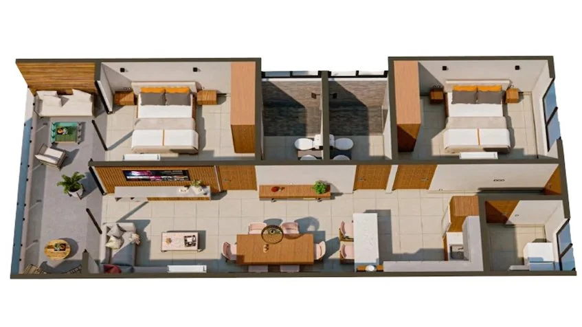 Nuestra colección de 43 departamentos ha sido meticulosamente proyectada para quienes buscan una vida de placer y serenidad. Aquí, la arquitectura contemporánea rinde homenaje a la exuberante naturaleza de Puerto Morelos, logrando una simbiosis perfecta entre diseño y entorno.
