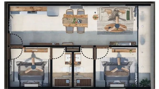 DK 42 Playa del Carmen es un nuevo y moderno desarrollo inmobiliario con 20 departamentos de 2 recamaras en venta en Playa del Carmen. Con una arquitectura inspiradora y un diseño contemporáneo sobresaliente, este desarrollo fusiona materiales de primera calidad con una ubicación estratégica para ofrecer una experiencia de vida sofisticada. Dk 42 Playa del Carmen incluye la siguientes amenidades: alberca, jacuzzi, rooftop bar, elevador, internet áreas comunes, recepción, estacionamiento subterráneo, cámaras de vigilancia, acceso al edificio con control biométrico, acceso controlado y seguridad 24/7.