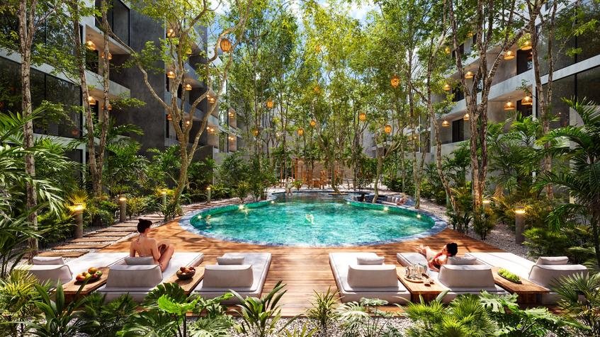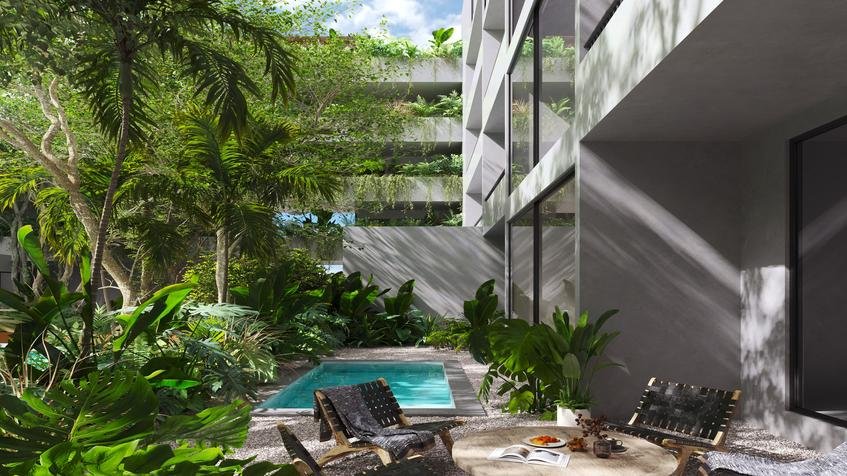 - Opciones: 48 unidades de 2 recámaras, de las cuales 14 tienen plunge pool y jardín privado.