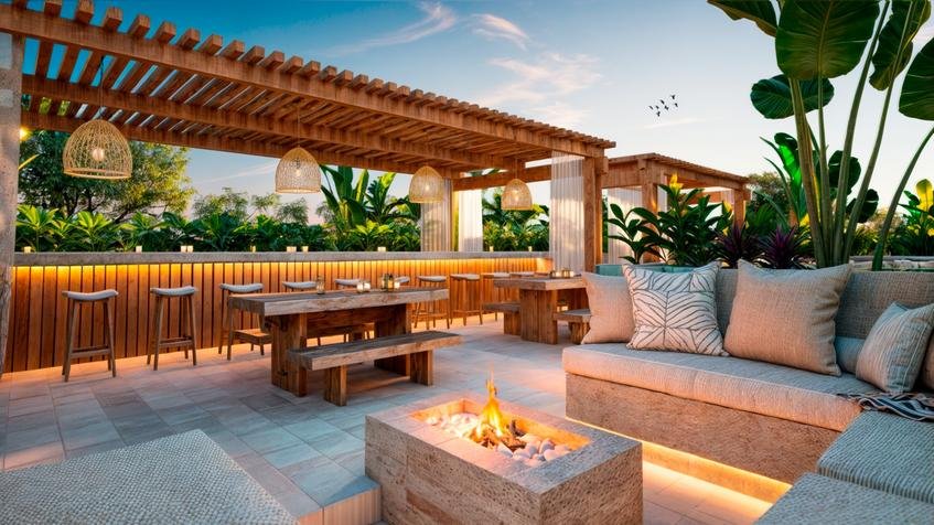 - Área pergolada para yoga y actividades holísticas