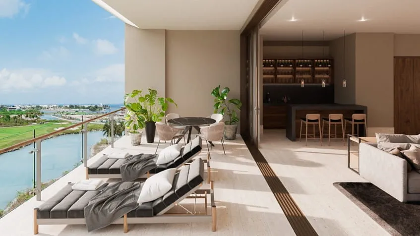 Vivir en La Vela Puerto Cancún significa formar parte de una comunidad cerrada que fusiona la vida urbana con el lujo residencial. Este entorno ofrece acceso a 250 metros de playa, una reserva ecológica, marina privada, club de playa y un espectacular campo de golf de 18 hoyos diseñado por Tom Weiskopf, consolidando a La Vela como una joya de los bienes raíces en México.