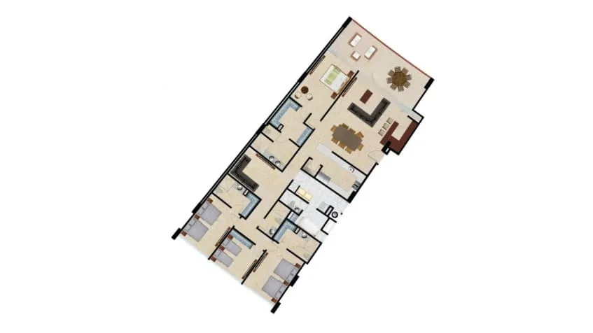 Nuestros departamentos han sido diseñados con el propósito de armonizar la mejor distribución para que vivas relajado, y aproveches cada metro cuadrado de tu hogar. Notarás que la distribución de nuestros departamentos está perfectamente bien balanceada y conjugada con los mejores acabados de lujo.