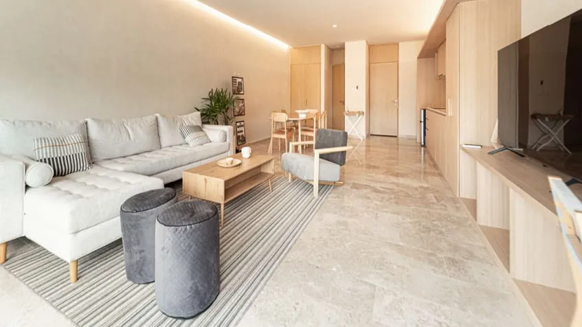 Desde los pisos de mármol hasta la carpintería de primera calidad y el granito en la cocina, cada elemento ha sido cuidadosamente seleccionado para ofrecerte un estilo de vida sofisticado. Además, nuestros espacios cuentan con chukum en las paredes, una característica distintiva de la región que combina belleza y durabilidad.