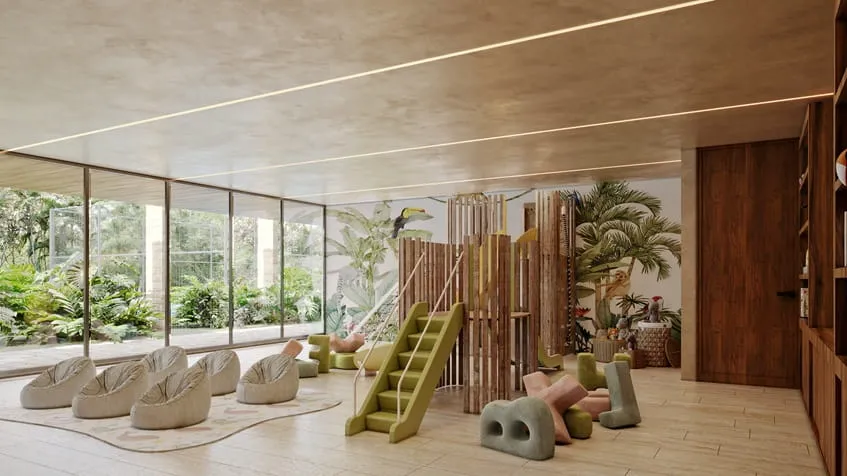 - Entretenimiento: Cine exclusivo, ludoteca alegre y luminosa para los más pequeños, y un área de juegos diseñada para estimular la creatividad incluso en días lluviosos.