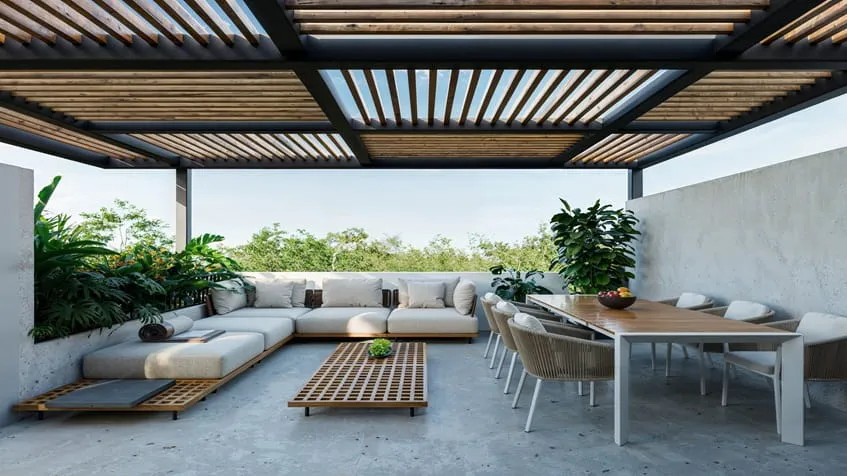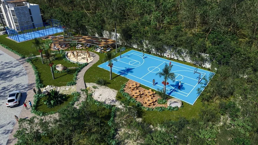 Tres Patios Playa del Carmen es un nuevo concepto residencial de 32 unidades con departamentos de 3 recamaras en venta en Playa del Carmen, en un entorno rodeado de amplias áreas verdes, creando un oasis de tranquilidad y frescura. Tres Patios Playa del Carmen incluye las siguientes amenidades: alberca, casa club, áreas verdes, área de asadores, área de jardines con hamacas, cancha de padel, jardín urbano, área de juegos al aire libre, kiosco, gimnasio al aire libre, área de lectura, parque para mascotas, acceso controlado y seguridad 24/7.